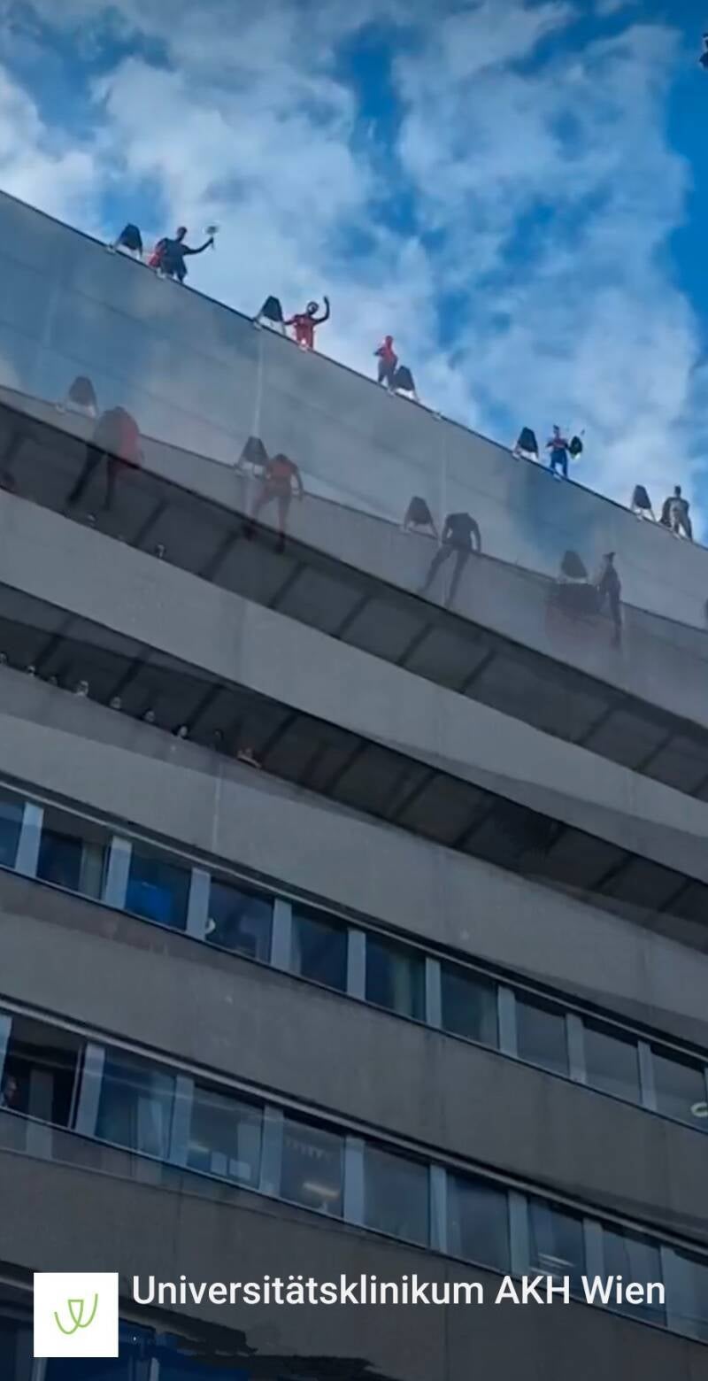 Im Herbst 2025 verwandelte sich der Innenhof des Allgemeinen Krankenhauses (AKH) Wien in einen ganz besonderen Ort. Die Luft war erfüllt vom Dröhnen der Helikopter, während sich Superhelden an den Krankenhauswänden hinabseilten und den kleinen Patient:innen der Kinderstation fröhlich zuwinkten.